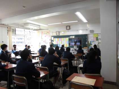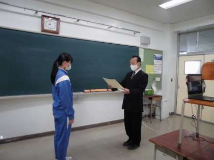 12月25日(金)2学期終業式です。今回は、Zoomで行いました。生徒会朝礼もZoomで行っていたので、各クラスの放送委員が行う、タブレットやモニターへの接続などの準備もスムーズになりました。校長先生の話の後、「税の作文」「税の標語」「競書会」「読書感想文コンクール」「美術部の全国書画展覧会」「バドミントン部の新人大会」などの表彰も行われました。また、今年度新聞各紙への投書を行い、何人かの生徒の投書が掲載されました。「いっしょに読もう!新聞コンクール」では、学校奨励賞及び優秀学校賞を受賞しました。