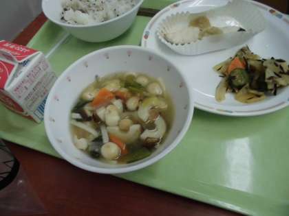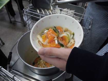 1月15日(金)今日の給食のあんかけ汁に入っている小松菜は、喜多見小学校で栽培されたものでした。美味しくいただきました。ありがとうございました。