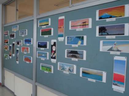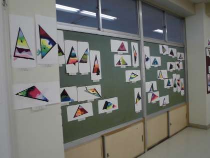 美術科 3年和菓子レプリカ制作 2年風景画(板に描かれた) 1年色彩構成