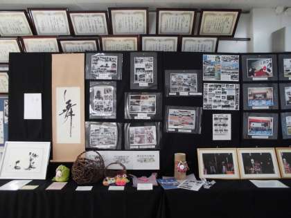 保護者、地域の方からも出品していただきました。「氷川神社節分の様子の写真」「工芸品・手芸品」「書」「40周年記念式典で展示した写真など」