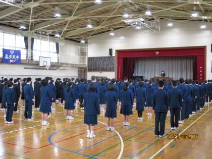 爽やかな春の風が気持ちのよい今日、1学期の始業式及び教職員の紹介を行いました。新クラス発表で興奮冷めやらぬ中だったかもしれませんが、整列した新2、3年生の立ち姿はたいへんに立派。新しい年度に際する強い決意や熱い思いが感じ取れました。