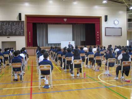 6月18日(金)湘南DVサポートセンターの方を講師にお迎えして、いじめ防止プログラムを行いました。暴力の怖さについてのお話からはじまりました。晴れ、くもり、雨、雷の絵を見て何に見えるかという質問があり、たくさんの人がいろいろな答えをしていました。人によって見え方は違うということを確認しました。自分はそんなつもりではなかったということが、実は相手の心を傷つけているいるかもしれないということ、また、被害を受けた時、いじめを見た時には、信頼できる人に相談できるようにすることを学びました。