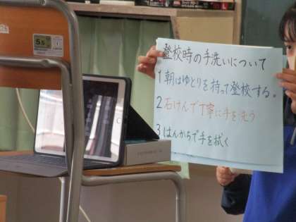 今週は生徒会朝礼から始まりました。生徒会および各委員会からは、ZOOM配信のメリットを最大限に生かした工夫ある企画のプレゼンが行われました。発表者は基本的に手持ち原稿なし。堂々と自分の言葉で分かりやすく伝える姿が印象的です。終了後には、恒例となった放送委員たちの拍手とハイタッチ — 爽やかな朝となりました!