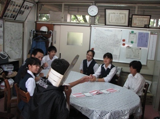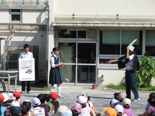 小中9年教育の取り組みの一つとして、喜多見中の生徒会と喜多見小の児童会が協力してプルタブを回収することになりました。生徒会役員が小学校の全校朝会で寸劇もまじえて協力の呼び掛けをしました。