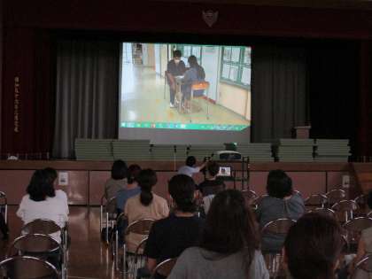 本日、14時45分から保護者会を実施しています。会場を各学年ごとに設定し、校内放送やICT機器の活用など、工夫を凝らした形式での実施となりました。2年生では、保護者の皆さんがタブレットで子どもたちの声のアンケート結果を見ています。雨の中のご来校に、感謝します。(写真は上から、1年生、2年生、3年生の順)
