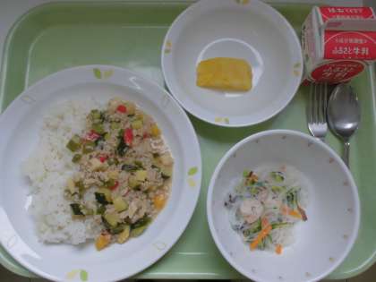 鶏ひき肉、玉ねぎ、ピーマン、パプリカなどの具材を