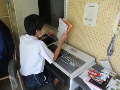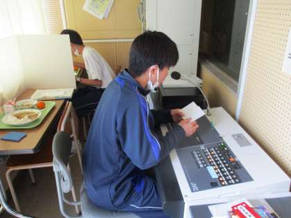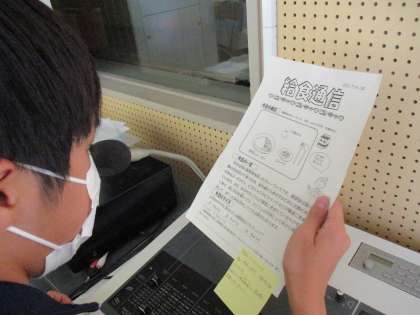 写真は給食中に流れる「お昼の放送」の舞台裏、放送室の模様です。今日は、毎日レギュラーの保健給食委員による「給食通信」と、生活委員会から第2回ソーシャルディスタンスキャンペーンの途中経過について報告がありました。