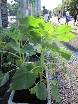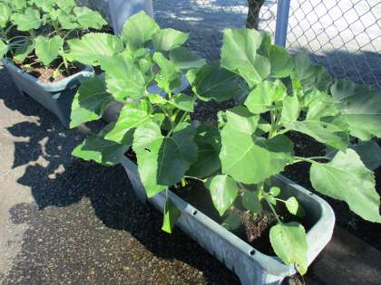 今朝の水やりには保健給食委員会が中心に集まりました。日に日に大きく成長するひまわり。如雨露のシャワーを浴びて、気持ちよさそうでした。
