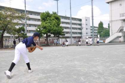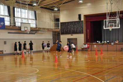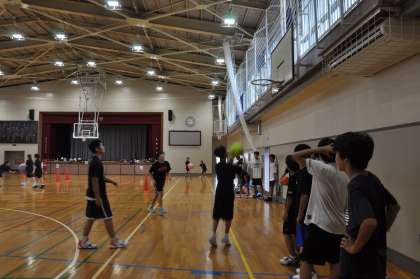 野球部と男女のバスケットボール部が基礎練習に汗を流していました。夏休みの終わりもカウントダウン。部活動も追い込みです。