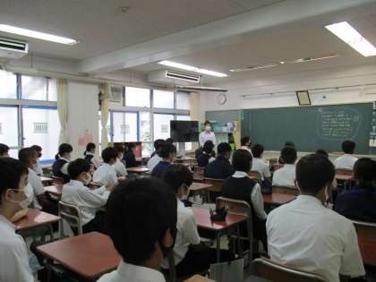 本日、2学期の始業式を行いました。校長からは、「オリンピック・パラリンピックから学ぶこと」と「楽観性バイアス」について講話がありました。また、生活指導部からは、感染症予防に向けて1つギアを上げて生活する際のポイントについて具体的な提案がなされました。