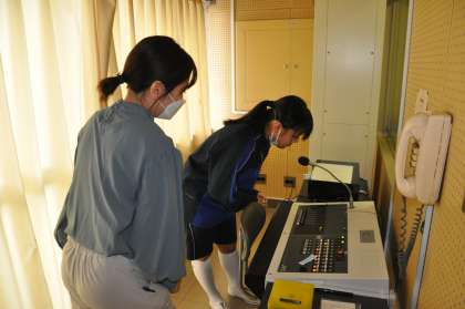 食事中はおしゃべりをしない「黙食」が励行されているなか、何とか楽しい時間の演出ができないものかと、職員たちも生徒たちも知恵を出し合っています。写真は、ある先生(本人のたっての希望により匿名)による昨日の読み聞かせの模様。『えつ、市販のCDかと思いました!』と、絶賛されるほどの腕前。もう一枚は、今日の放送委員さんと川野先生による即興の「イントロクイズ」の一コマ。
