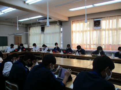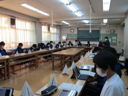10月14日(木)後期の委員会活動が始まり、中央委員会が行われました。後期からは2年生が各委員会の中心となり活動します。プリントは各自のタブレットに配信され、議題が進行していきます。学校生活を良くしていこうという強い気持ちをもって主体的に取り組んでいました。後期の各委員会活動に期待してください。