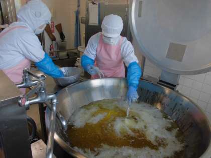 慎重に油の中に入れていきます。