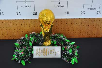 22日の雨天のために順延されていた、2021 KITAMI SOCCER CUP がいよいよ今日開幕となります。正面玄関には、大きなトーナメント表が掲示され、各学級の応援ポスターと「栄光の優勝トロフィー」が花を添えています。昼休みが待ち遠しいです。