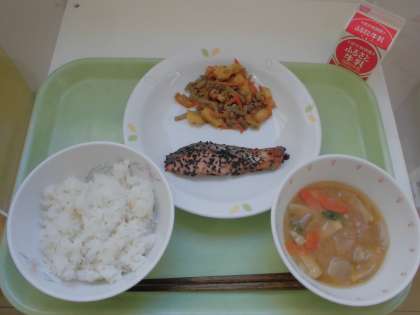 下味をつけた鮭に均一になるようにごまをふっていきます。