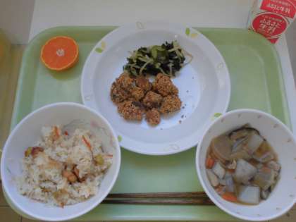 が有名ですが、給食では提供できないので今日は竜田揚げにしました。