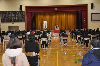 1校時の体育館では、1年生を対象としたセーフティ教室が開かれました。SNSトラブルの怖さ、未然防止に向けた本企画ですが、ちょっと写真からは想像が…