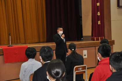 何と落語の演者は成城署のスクールサポータ—の齋藤様です。プロ顔負けの素晴らしい話芸に本テーマを載せてご披露いただきました。その後、加藤係長様より具体的な事案を交えたお話をいただきました。『想像力を働かせ、自分も相手もを守ること』を学びました。