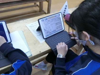 3年生が受験の前のため、今回の中央委員会は1、2年生だけで行いました。初めに議長の2年生から「3年生が不在ですが、今までと変わらない活発な中央委員会を作っていきましょう!」という激励の言葉で始まり、各委員会の報告に対してたくさんの質問が飛び交いました。「学校をより良くしよう!」という気持ちが伝わる素晴らしい会議となりました。