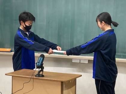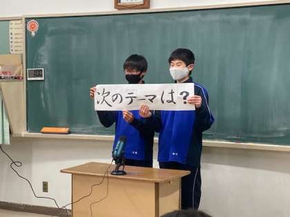 今週は生徒会朝礼で始まりました。生徒会本部や各専門員会からの提案や報告がありました。保健給食委員長から、『受験を控えて忙しい3年生の先輩たちのためにも、1,2年生の私たちが率先して喜多見中の環境美化に努めていきましょう』という、メッセージがありました。