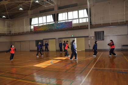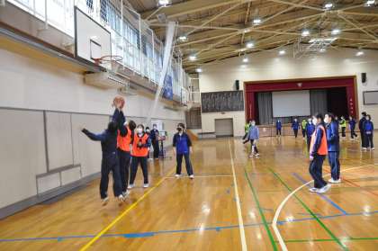 4校時の体育館では、2年生の女子がバスケットボールを学習していました。先日の男子のダンス同様に、明るく楽しくきびきびと動く姿は素晴らしく、とても良い雰囲気の中の授業でした。授業の「めあて」を最初に確認すると、あとは生徒たちが自分でよく考えて動いていたのが印象的です。