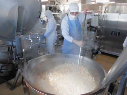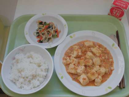 麻婆豆腐は豆腐が崩れないようにゆっくりと混ぜながら煮込みます。