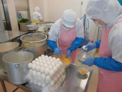 卵焼きの日にはたくさんの卵が給食室に届きます!