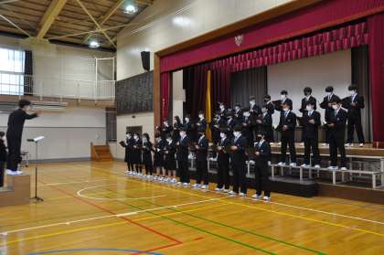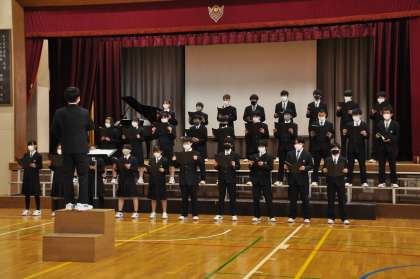 5校時、体育館にて2年生はクラスごとに学級合唱の模様を撮影しました。コンクール形式を改め、3年生への感謝のメッセージを添え、「できる範囲」で歌い上げました。どのクラスも実行委員たちのリーダーシップが光っていました。
