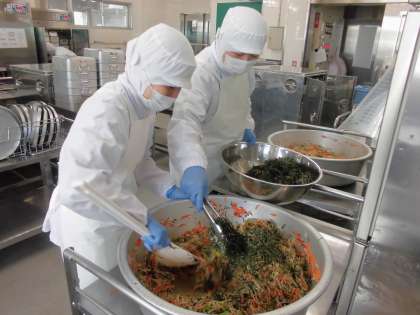 磯辺和えにはボールいっぱいの刻みのりを使います。