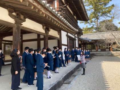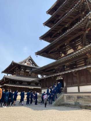 穏やかな春の陽気に恵まれました。すでに昼食をいただき、法隆寺から見学しています。