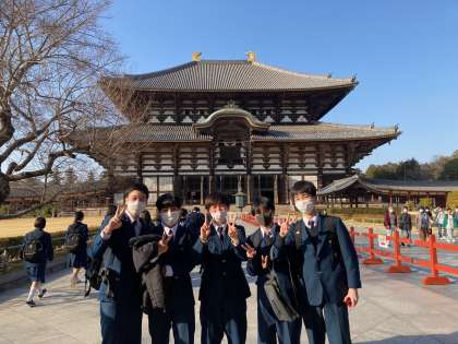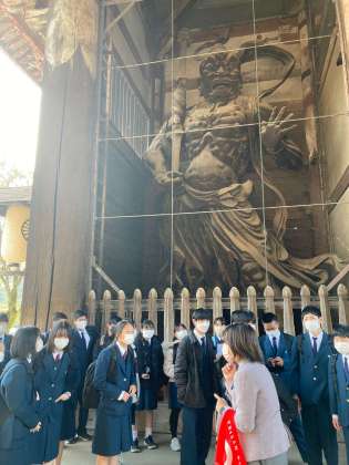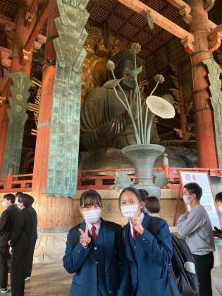 東大寺です。余りの大きさに圧倒され、あがる声も自然です。