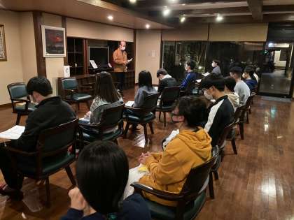 初日の行程を無事に終え、初日の宿に入っています。めりはりのある、態度はさすがの三年生です。