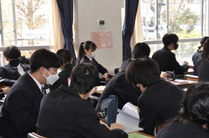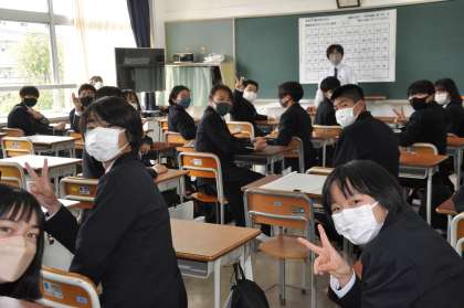 旧学級での学活を経て、新学級が発表されました。写真は新学級での一コマ。すでにクラスカラーを感じさせます。早速、拍手や歓声が校長室にも届いています。