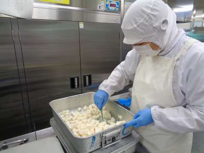 ヘラでさいの目に切ってから