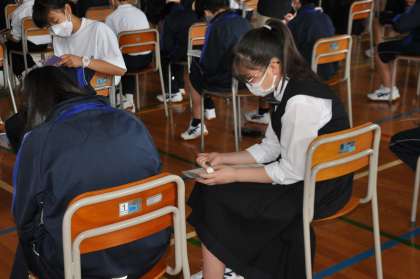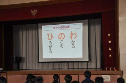 本日の1校時は、1年生を対象としたネットリテラシー醸成講座を実施しました。外部講師をお招きし、生まれる前からあるネット社会の一員として心得ておくべきポイントについて学びました。