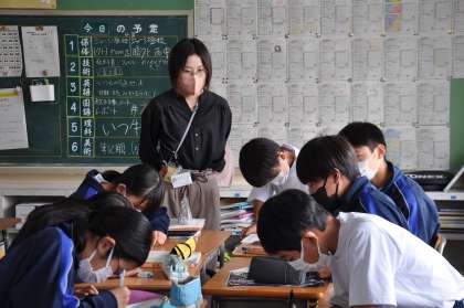 今日は富山先生が喜多見小学校から来てもらっています。写真は、3月まで担任としてお世話なった子も多い1年生の学級での様子。ある生徒が私に、『僕は2回、担任をやってもらいました!』と、ニコニコ顔。嬉しそうな1年生たちが印象的です。