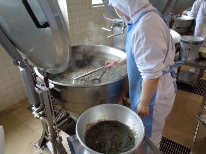けんちん汁にはごぼうが入るので、黒いアクがたくさん出ます。