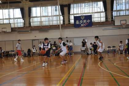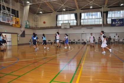 午前中、体育館ではバスケットボール部が三宿中学校を招いて練習試合を行っています。男子の雪辱を女子が果たすなど、互いにいいライバルの様子です。感染症と熱中症にはくれぐれも気を付け、両校ともに頑張ろう!