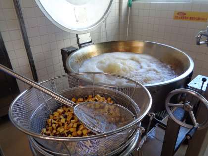 昨日、紹介した回転釜でさつまいもの素揚げをしています。