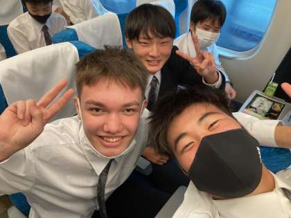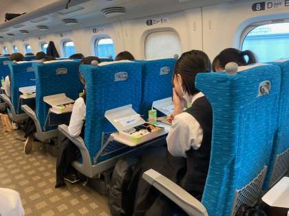 参加予定者は全員集合しています。現在、三河安城駅を通過中。車内は少し早めのランチタイムです。