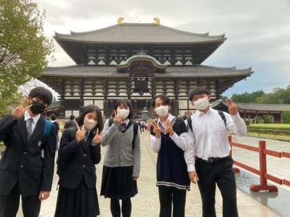 東大寺から班行動。各班散策して今夜の宿、白鹿荘を目指します。