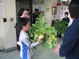 今回は、1年生が作った大蔵大根をお届けしました。校長先生を始め、多くの小学生に受け取っていただいて、うれしかったです。