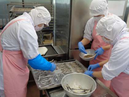 ししゃものごま焼きの準備をしています。