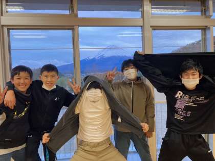 無事に宿舎に到着しました。『今日明日はとても暖かく、富士さんもくっきり。皆さんは本当に幸運です!』とは、学園長さんの言葉。幸せですね。