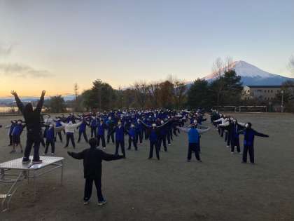起床とともに、眼前の富士山の美しさに歓声が上がっていました。心配された体調も皆んな順調な様子。ラジオ体操も元気にこなしていました!