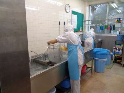 調理をしている裏で、使い終わった調理器具を洗浄してくれている方もいます。