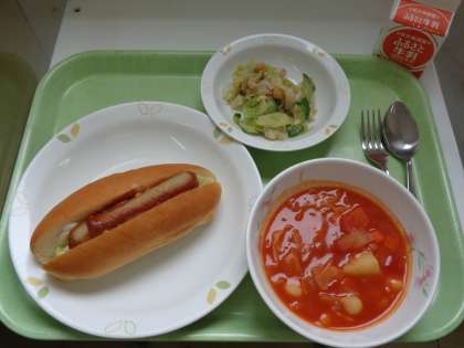 ウインナーサンドはキャベツをはさむ、ウインナーをはさむの2工程に分かれています。