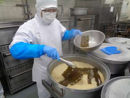 茶飯は調味料と一緒にだし昆布も入れて炊いています。