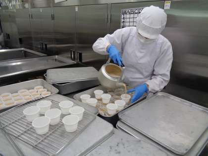 1つ1つのカップに丁寧に注ぎ、冷やし固めます。