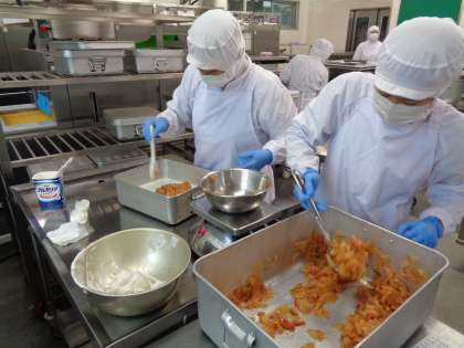 アップルヨーグルトの配缶をしています。